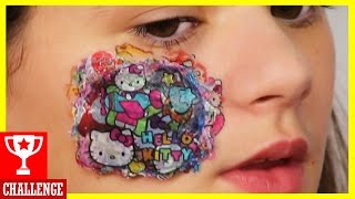 100 LAYERS CHALLENGE! FACE TATTOOS! | KITTIESMAMA